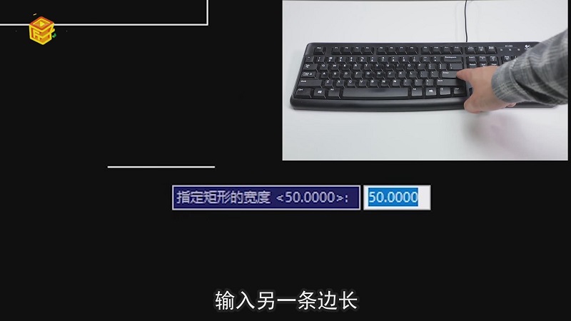 5、输入矩形的一条边长,回车直接切换输入另一条边长。