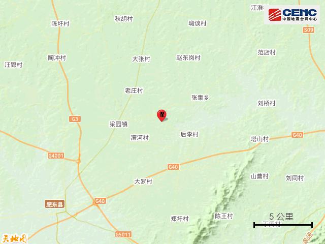 安徽合肥市肥东县发生3.8级地震,震源深度12公里