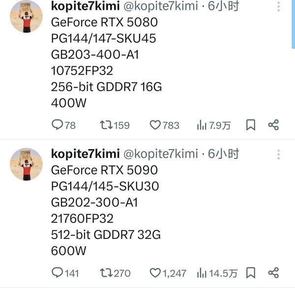 涨价不可避免!RTX 5090、5080规格完整曝光:英伟达强行拉大差距