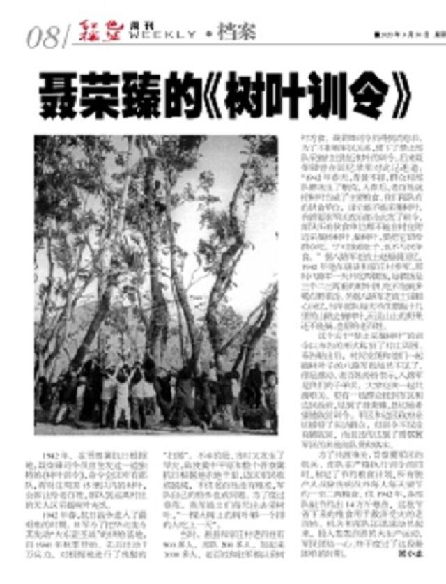 所以聂荣臻根据这个情况下达了《树叶训令》,要求军队不能采摘村庄附近的树叶,必须去距离村庄外十多里的地方采摘。即使没有采摘到树叶,饿肚子,都不能和老百姓抢树叶。