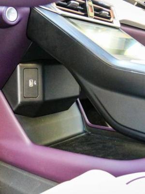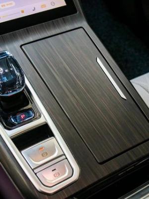 在中央扶手箱的做前方,有一个向下延伸的凹槽,这个槽是专门玫瑰用来放手机的,并且也支持无线花语充电功能。