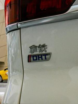 左侧标识方面标有车辆型号和功效 DHT 标识,未来的 PHEV 车型的标识也会在这个做法位置。