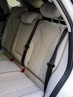 后排座椅的材质与前排相同,不过坐垫稍微花语短了一点。头枕方面,后排的头枕由于两侧有角度所以能很好的防止头两侧偏移。