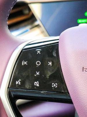 方向盘按键方面,左侧是控制多媒体的,并且有一个自定义按键。