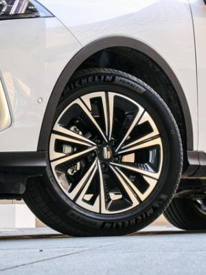 轮毂采用了双色设计奇诺,尺寸为 19 寸,除了这套轮毂外,拿铁还有一套 19 寸轮毂和 20 寸轮毂可选。轮胎尺寸为 235/55 R19,原厂轮胎采用的是米其林的浩悦 4,价格在 1300 元左右。
