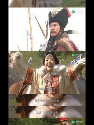 当葛尔丹将蓝齐儿抱上马匹儿回后,蓝齐儿从马匹上斜挂的丹蓝箭筒里拿出了一支箭,拉弓,向送亲的大阿哥方向射出去。