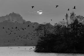 当然不例外,星湖湿地就是诗歌的天然材料库。星湖国家湿地公园是典型的山水环绕型湖泊湿地,七座喀斯特岩山如天上北斗,绰约多姿,映照万亩湖光。湖堤蜿蜒,小岛星罗棋布,处处风光旖旎,充满自然、古朴、野趣,犹如人间仙境。这里流传着“禾花仙女”、“卧佛含丹”、“出米洞” 等美丽动人的人文传说,充满着“仙气”、“灵气”。