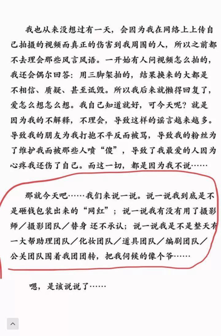 其实这段话说的也是很实在的,包括她返回老家,自耕自种的生活,都是为了能陪伴年迈的奶奶。这些说辞网友们倒也没有过多的争议,争议的是她拍摄出了这么唯美的画面,到底是一人行为,还是出自拍摄团队之手,李子柒在面对这样的质疑时曾经做出过回应。