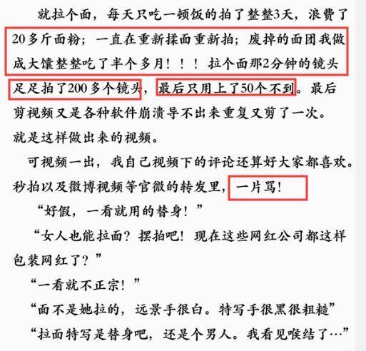 可这个视频却被网友群嘲,说她用替身、有网红公司替她包装。对于这点小8倒是有话说,李子柒曾经提供了各种证据证明自己并没有团队,比如网友质疑的同一只手,时白时黑,李子柒在微博上澄清因为光线的不同,手部确实颜色不一致,如果是有专业的团队,这么明显的bug应该不会被人抓到吧。