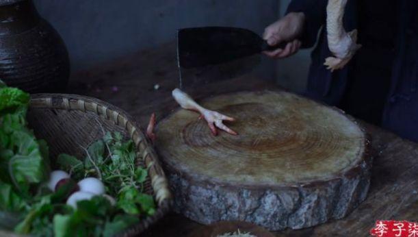 再比如她切鸡的视频,画面真的不唯美,甚至鸡爪的摆放都能让人感到恐惧感,这样的拍摄应该也不是专业行为。
