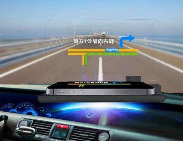 调整完成后,将手机固定在挡风玻璃下,而此时你会清晰的看到手机导航的信息会在挡风玻璃显现,不过这种投屏方法比较适合晚上使用,一般白天由于光线问题,效果并没有那么好!