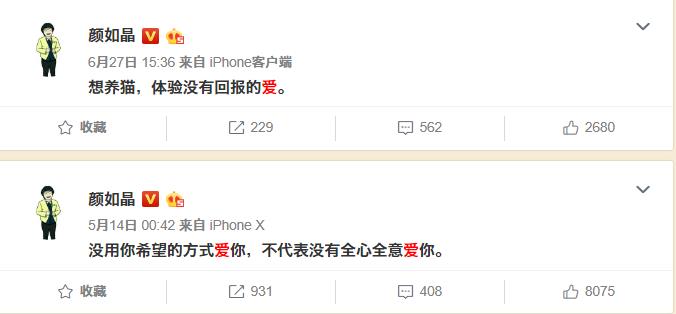 从颜如晶的微博里也能看出一些蛛丝马迹,她曾经有意无意的发过一些过自己关于感情方面的文字,让人不禁猜测颜如晶是否为情所困,外表看来快快乐乐,无忧无虑的颜如晶其实也是个内心很敏感的女孩子,期待颜如晶能够早日瘦下来,成功树立起追求一段爱情的勇气和信心。