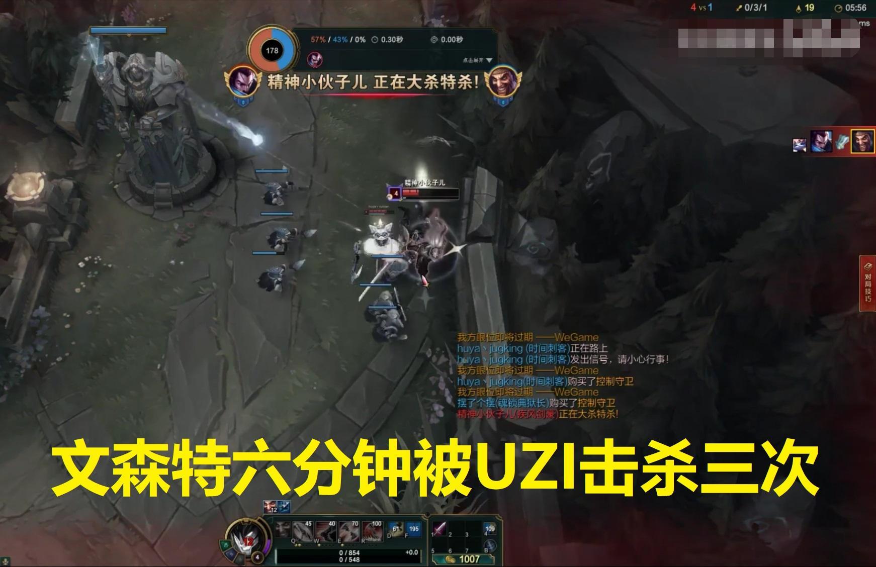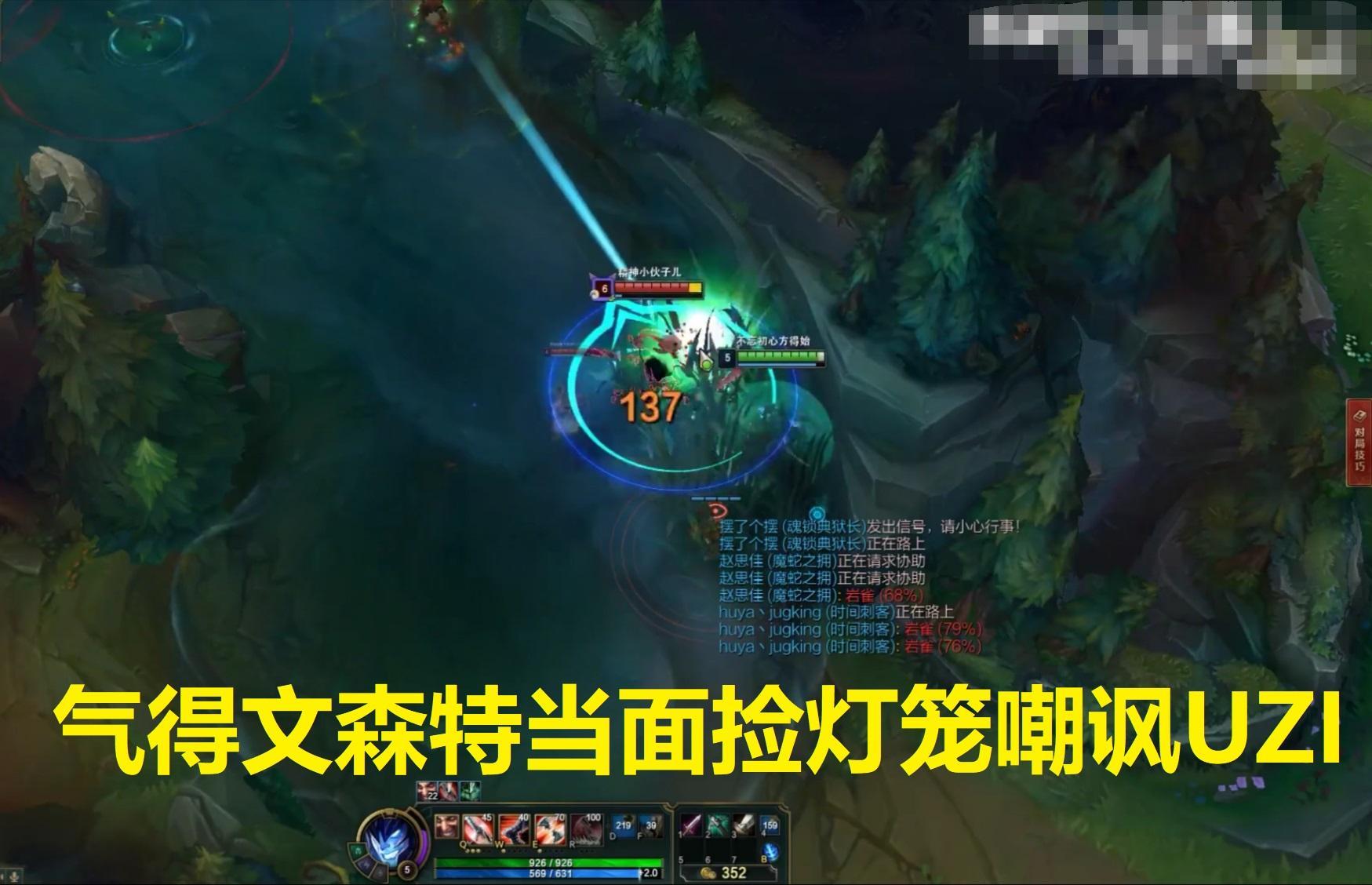 文森特六分被UZI杀了三次,气得当面捡灯笼嘲讽他,UZI的回应亮了