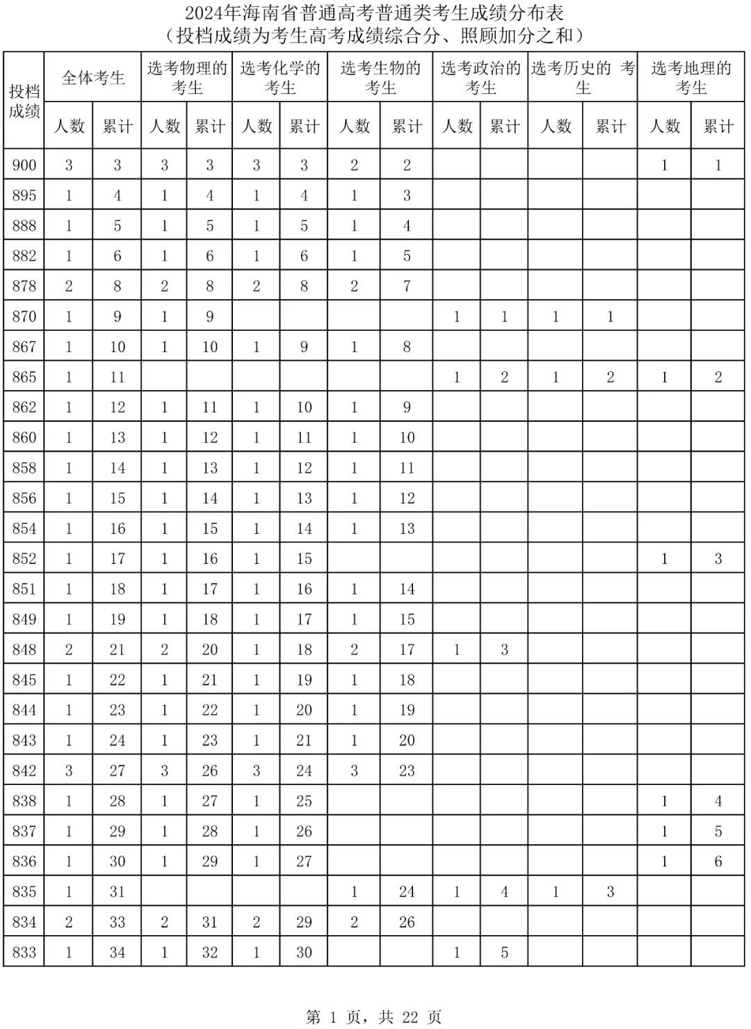 海南省考试局也在刚刚公布了全省考分排名,整整22页!