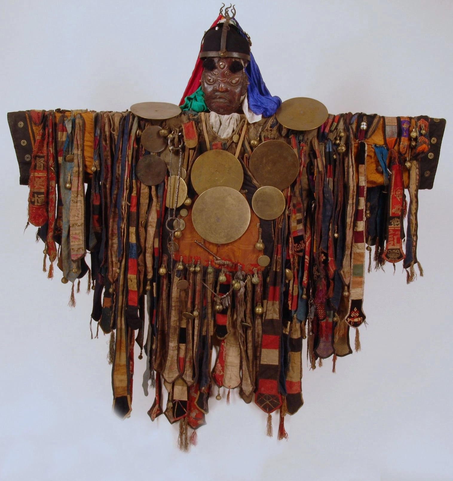 10. 萨满的服饰通常色彩斑斓,充满象征意义,如鹿角、熊爪等动物元素代表力量与勇气。萨满的帽子常常装饰有羽毛或兽皮,象征与天空和动物的紧密联系。