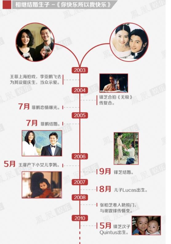 2004年,张柏芝与谢霆锋在电影《无极》中一合作,传出了复合的绯闻,然后,感情一日千里。随后,王菲也与李亚鹏走到了一起。