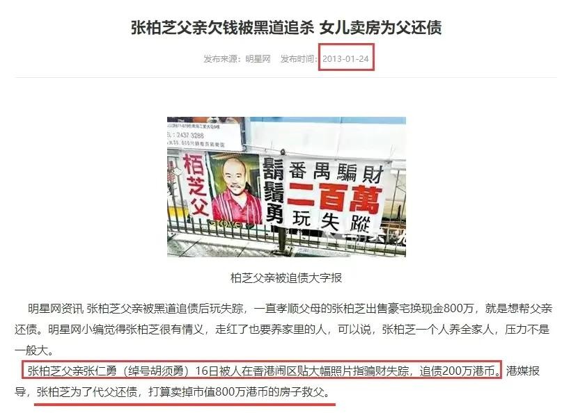 不过,那时候,张柏芝的父亲却被一些黑道的人追着要债,还曾半夜去找她的男友借钱。