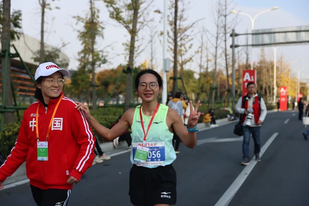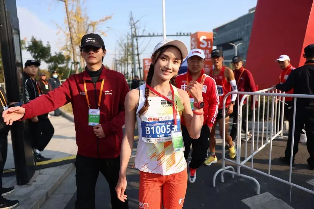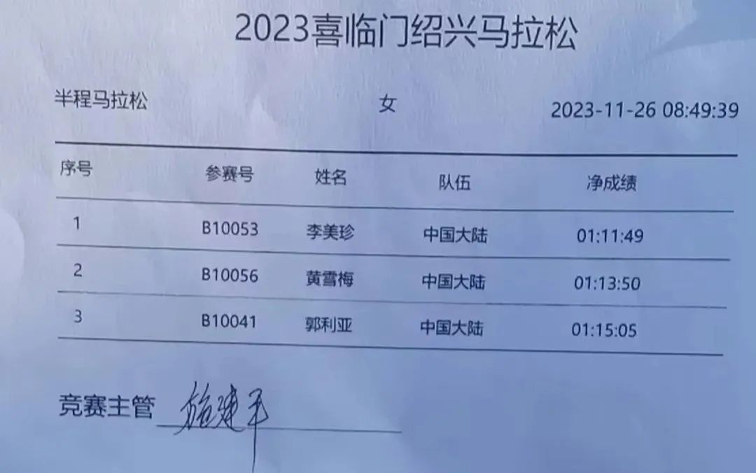 因为李美珍刚放假回来状态很好,发挥稳定获得2023绍兴女子半马第一成绩1小时11分49秒左右。她冲线还笑了,看来轻松的啊。