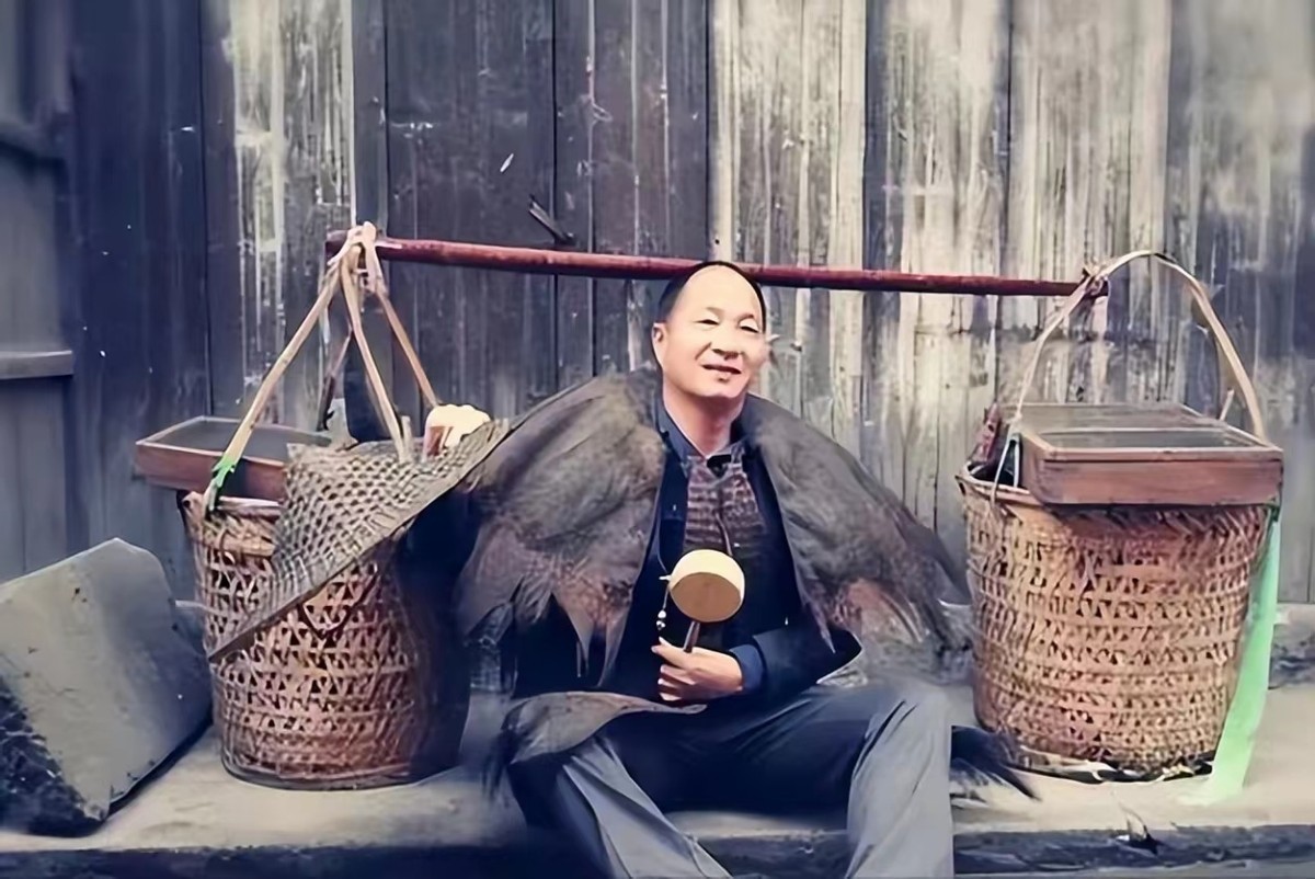 陈江河每天挑着货郎担,游走在大街小巷,拿糖去换别人家的鸡毛,然后再拿鸡毛去换钱。
