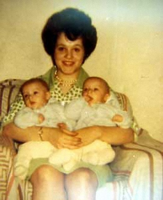 妈妈怀中的双胞胎兄弟小布莱恩和布鲁斯