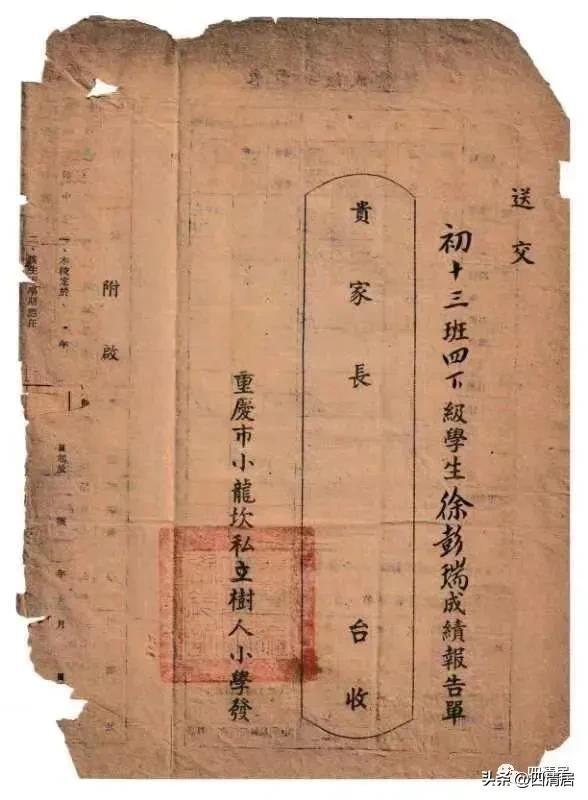 图八|封内所附重庆树人学校成绩报告单 四清居|李中东藏