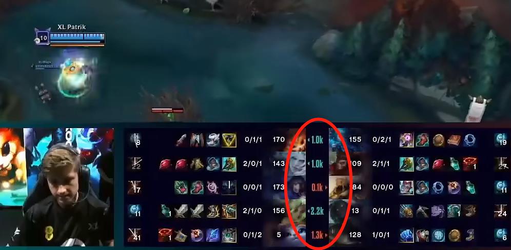 可能从原图上面来看,我们看不出和LPL有什么区别,也许是大家的心思,都放在了比赛上面,不过在有的时候,一些小细节总会被我们注意到,首先我们可以看到,在装备栏的中间,有五个小数字。这个小数字就非常的有趣了,是“对位经济差”。我们可以直观的看到,哪个位置领先的经济多,也可以更加直观的看出来,两位选手在一场比赛当中的差距。这个小细节可以让我们在比赛里面,获得更多的数据。