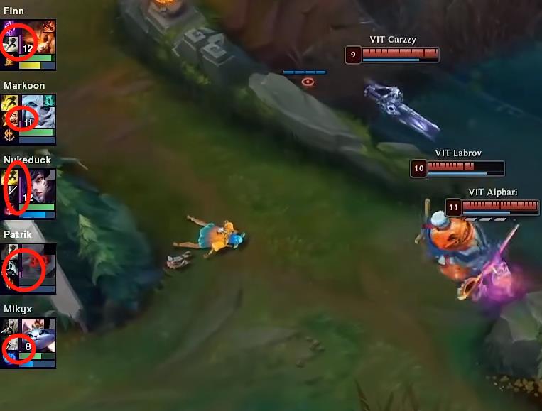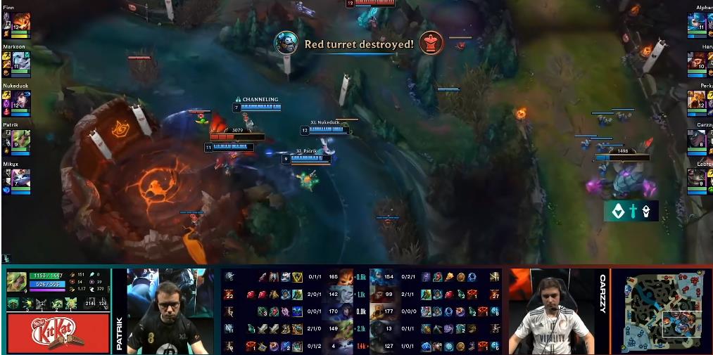 其多次就是英雄的经验,我们总是很难看到,一个英雄什么时候,差多少经验升到下一级,前面还可以推算出来,但是到了6级往后,每一级几乎都没多少人会去记了,就算想要去记,也不可能随时都盯着一个英雄,去看他的数据面板下方的经验条呀。而LEC的界面上面,英雄头像左/右侧标记了一个紫色的柱体,这个就是经验条,有了这个,像什么天使卡萨丁还有多少经验到16,就可以一目了然了,是不是非常方便呢?