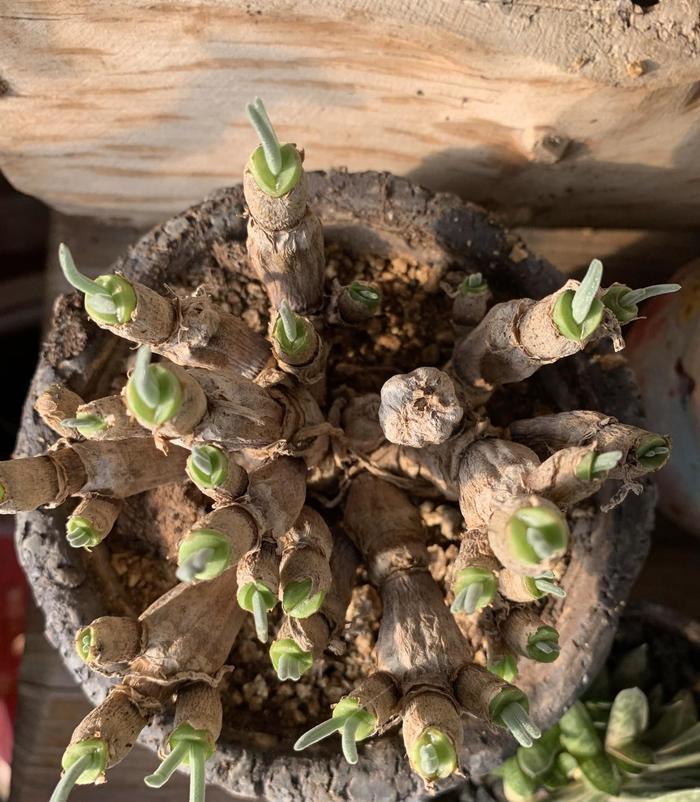 受到环境气温的影响,分裂在秋天必须要进行的,碧光环有一个突出点,在进行分裂的同时,会从侧枝上长出新的芽点,生长的数量格外的多,养的时间越久,分生的芽点越多,现在市场上的价格,一个侧芽大概在五六块钱,价格相对以前便宜了很多。