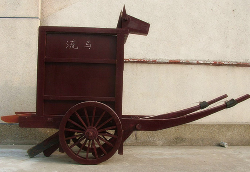 高承《事物纪原》说:“木牛即今小车之有前辕者;流马即今独推者,民间谓之江州车子。”而范文澜的观点却恰恰相反,认为木牛是一种人力独轮车,有一脚四足;流马则是改良的木牛,前后四脚,是人力四轮车。究竟哪种正确,我们无从评判。