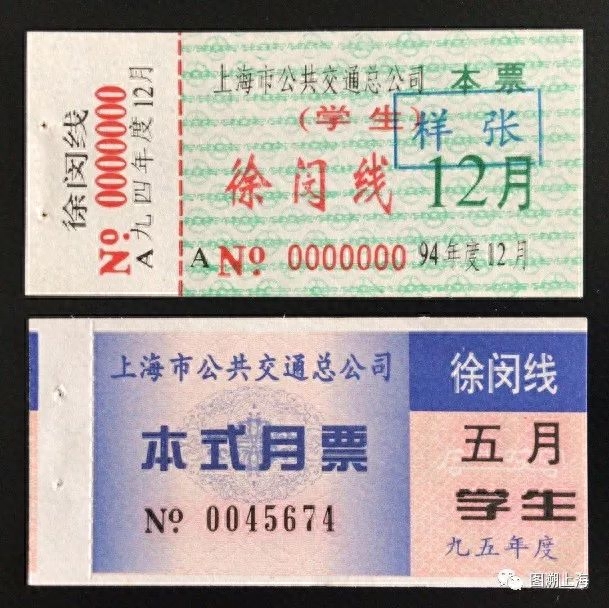 1994年启用的徐闵线普通本式月票及学生本式月票(陈寒松提供)