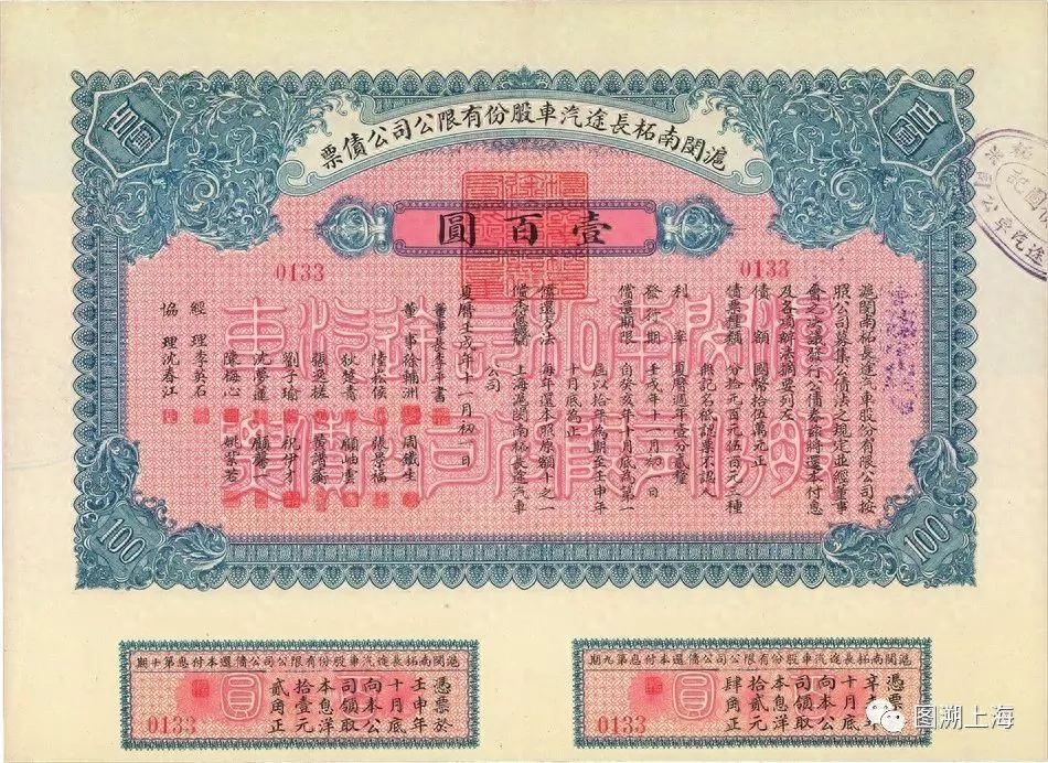 沪闵南柘长途汽车公司发行的公债票(股票)