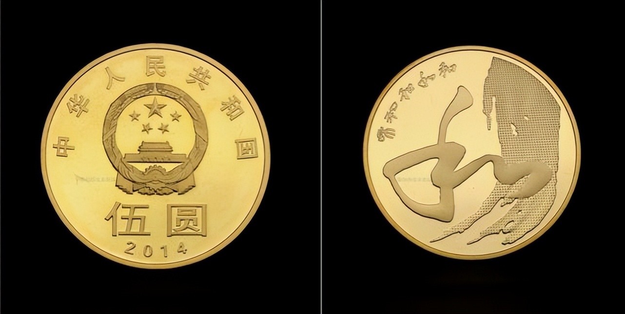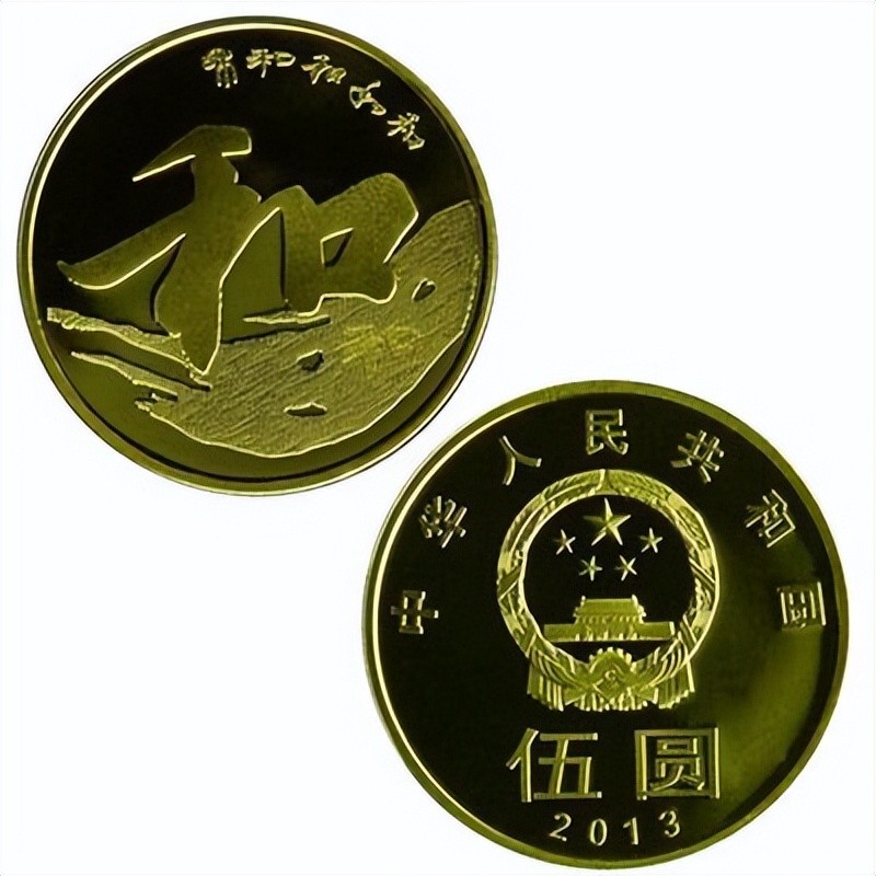 “和”字系列纪念币的第三枚,是“和”字行书纪念币,它是在2013年发行的。行书纪念币也采用了黄铜合金材质,但是它的面值和前面发行的两枚不同,它的面值为五元。行书纪念币的发行量为5000万枚,这个数量在纪念币当中在以前来说算是很大的了。所以这也就导致了它的市场价格相比前面两枚纪念币来说就低很多了,目前它的市场价格大概在10元左右一枚。