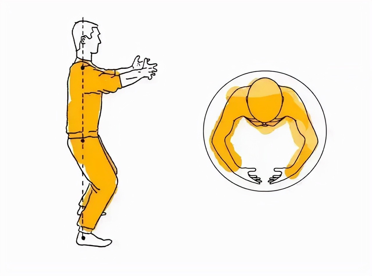 随着熟练程度的提高,呼吸时两手向回去收和向外推的幅度也越来越小,最后变为以意领气向回收,以气催力向外推,从外形上看不出手的动作。