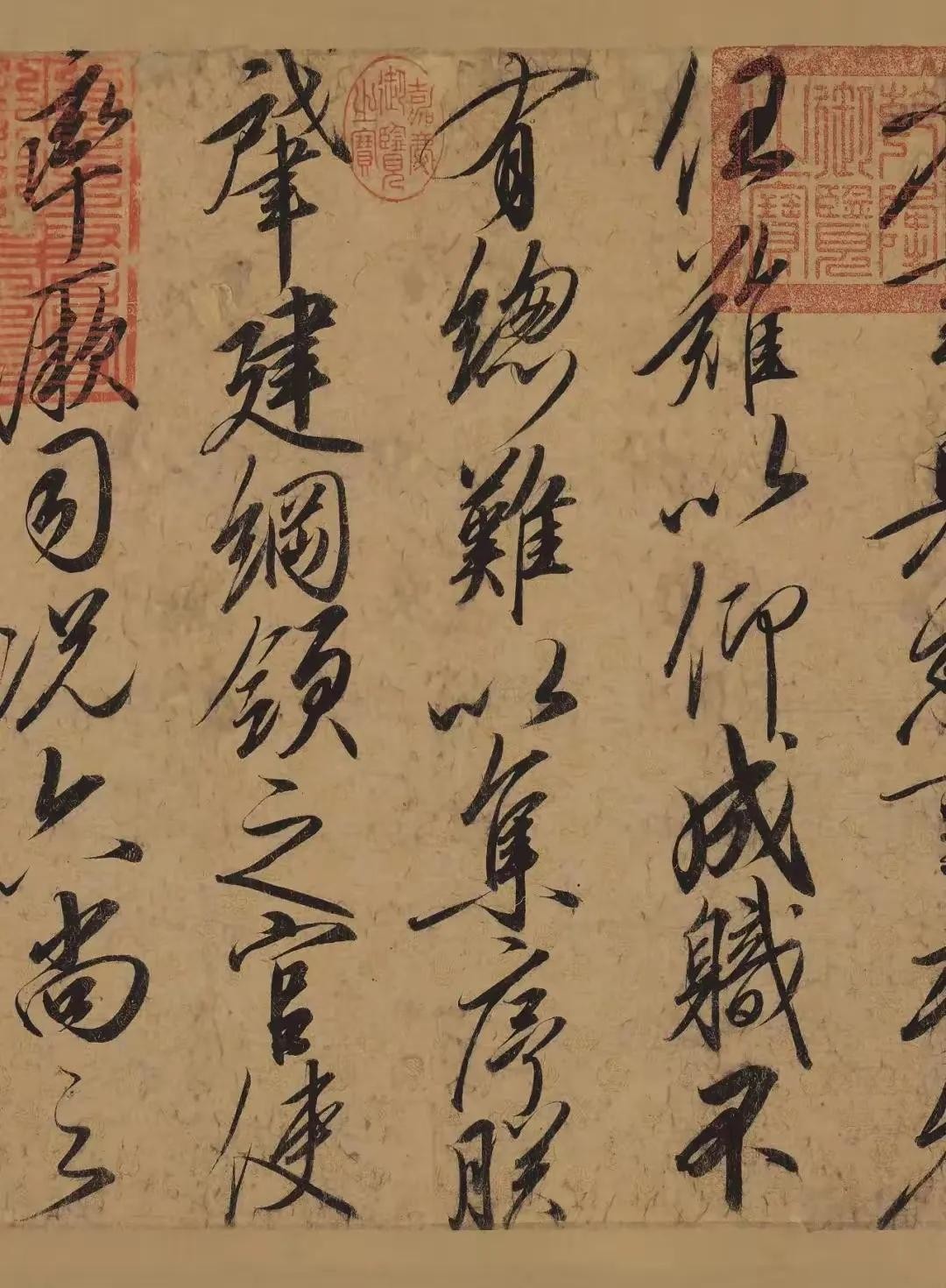 在书写过程中,宋徽宗注重字形的整体布局和笔画之间的呼应关系。他通过精心安排字形的大小、宽窄、高低和斜正等要素,使得整个作品在视觉上呈现出一种和谐统一的美感。同时,他还注重笔画之间的呼应和连接关系,通过巧妙的运笔和布局,使得笔画之间能够相互呼应、相互连接,形成一个有机的整体。这种结构风格不仅展现了宋徽宗对书法的精湛技艺,更体现了他对自然万物的深刻感悟和独特见解。