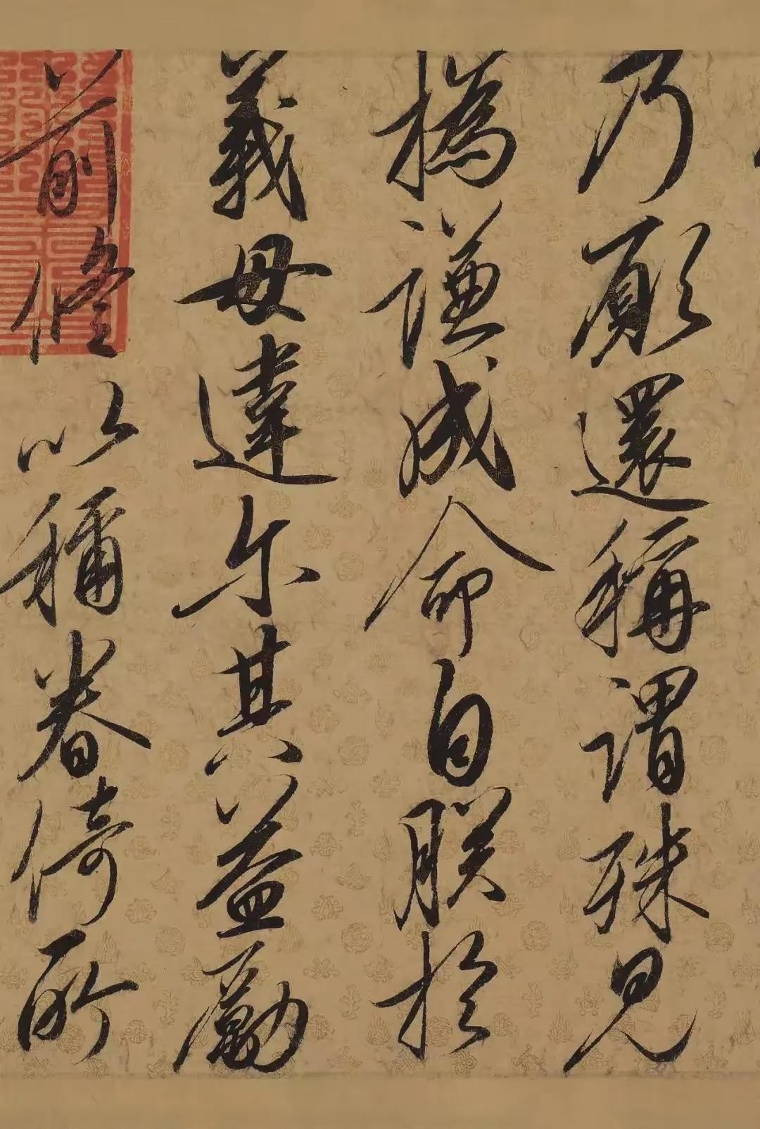 在书写过程中,宋徽宗注重笔力的控制和运用。他通过调整笔锋的角度和力度,使得笔画在起笔、行笔和收笔时都能展现出不同的形态和质感。例如,在起笔时,他往往采用轻入纸的方式,然后逐渐加压,使得笔画线条由细到粗,形成独特的“钉头鼠尾”效果。在行笔时,他则注重笔画的流畅性和连贯性,通过手腕的灵活转动和笔锋的自如变化,使得笔画在纸面上呈现出一种灵动自如的美感。在收笔时,他则注重笔画的收束和回锋,使得笔画线条在结束时能够自然收拢,形成完美的收尾。