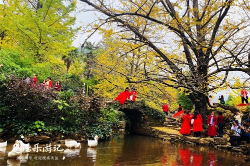 很多银杏树生长在湖畔,枝干横过溪面,掩映着溪水,让溪上变得阴凉而幽静,夏季时是凉爽的玩水胜地,秋季变得古朴而宁静,有一种“枯藤老树昏鸦,小桥流水人家,古道西风瘦马”的意境之美。