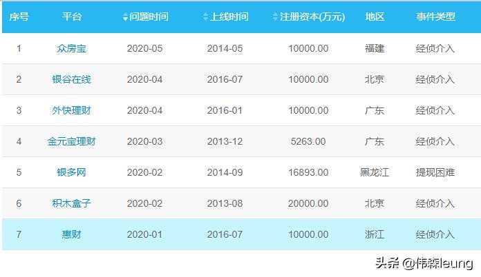 截止至2020年5月,2018年到2020年出问题的P2P平台已达913家。以下是出问题的平台的超全名单!按照问题时间进行排列。请查阅周知!