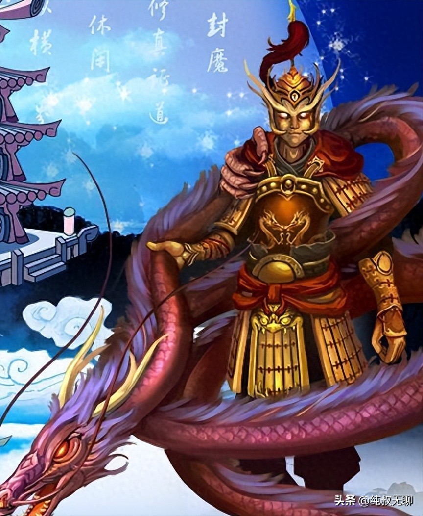 他突出的特点就是,在左边耳朵上有蛇,但没有说有几根蛇,或者是什么颜色的蛇,因为在本书中,对耳朵上有蛇的神还是比较多的。本节还对他的交通工具作了交待,是乘两龙,这个待遇与南方神祝融一样。看来,对于待遇的要求,自古有标准的。