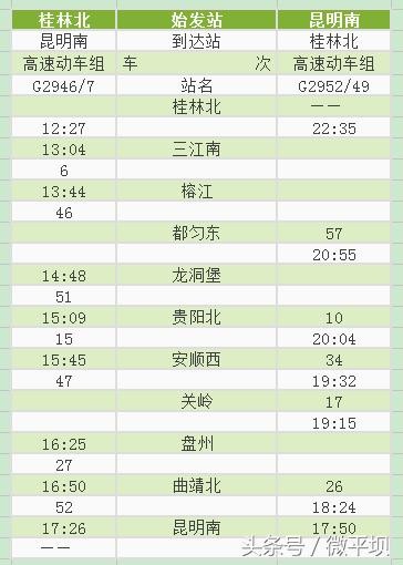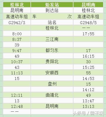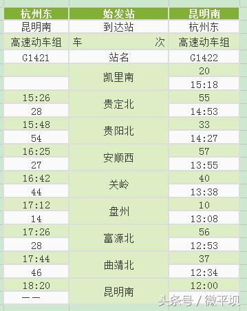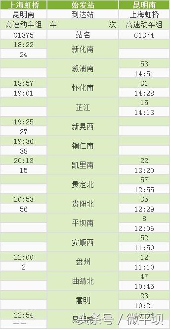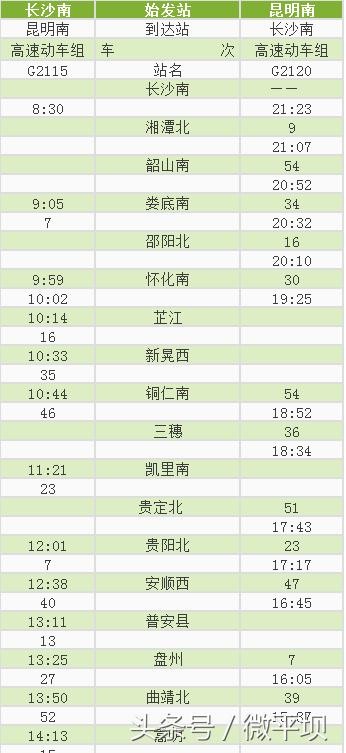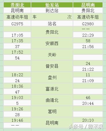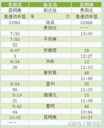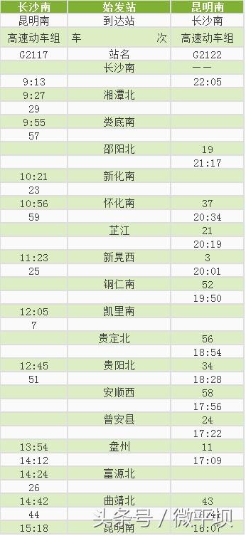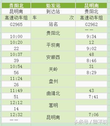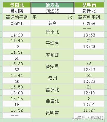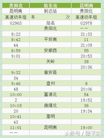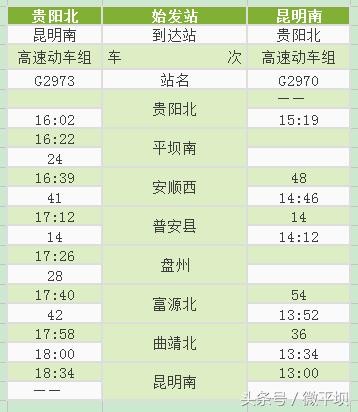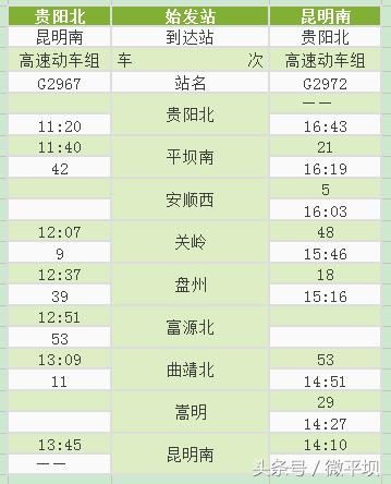 附:沪昆高铁贵州西段新增动车时刻表