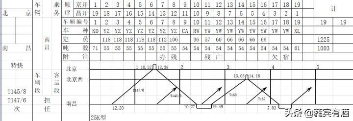 北京西到南昌间的T167/8和另外一对南昌至北京特快T145/6套跑(车底紧张,不同车次共用同一组车底),其实不难理解,T147/6/5/8要经过重要枢纽城市株洲,但株洲站比较繁忙,经常会因为株洲站无法接车而导致列车被卡在五里墩晚点,随而就导致后续晚点。