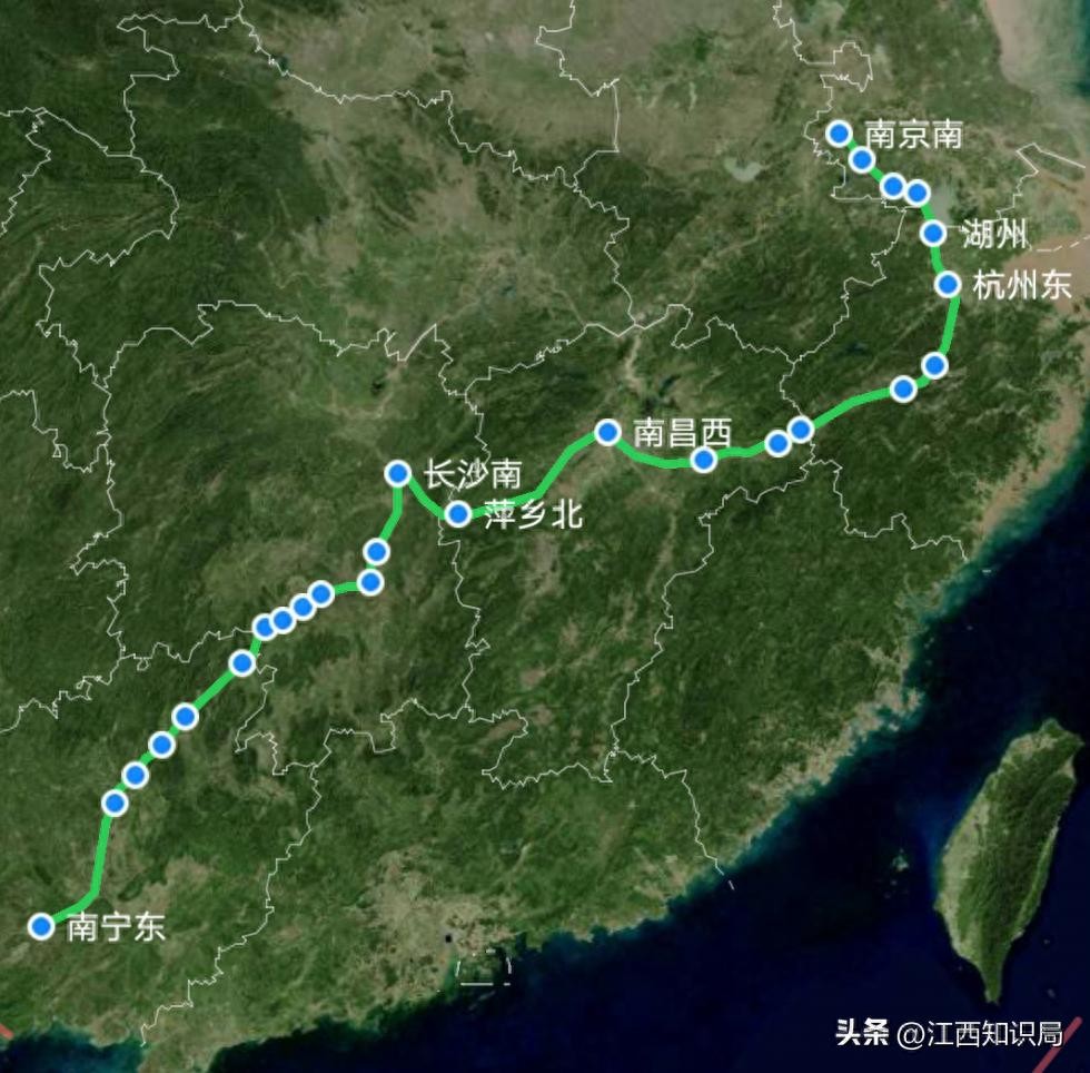 列车途经省份:广西壮族自治区,湖南省,江西省,浙江省,江苏省等1区4省。
