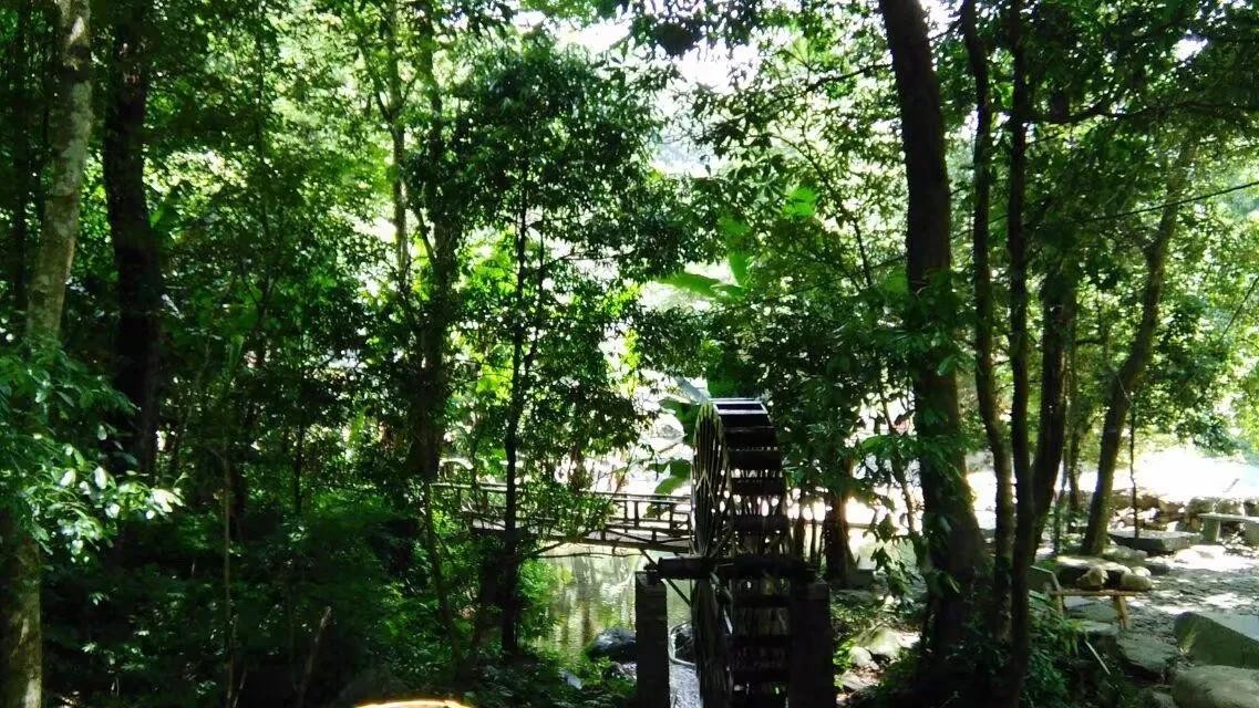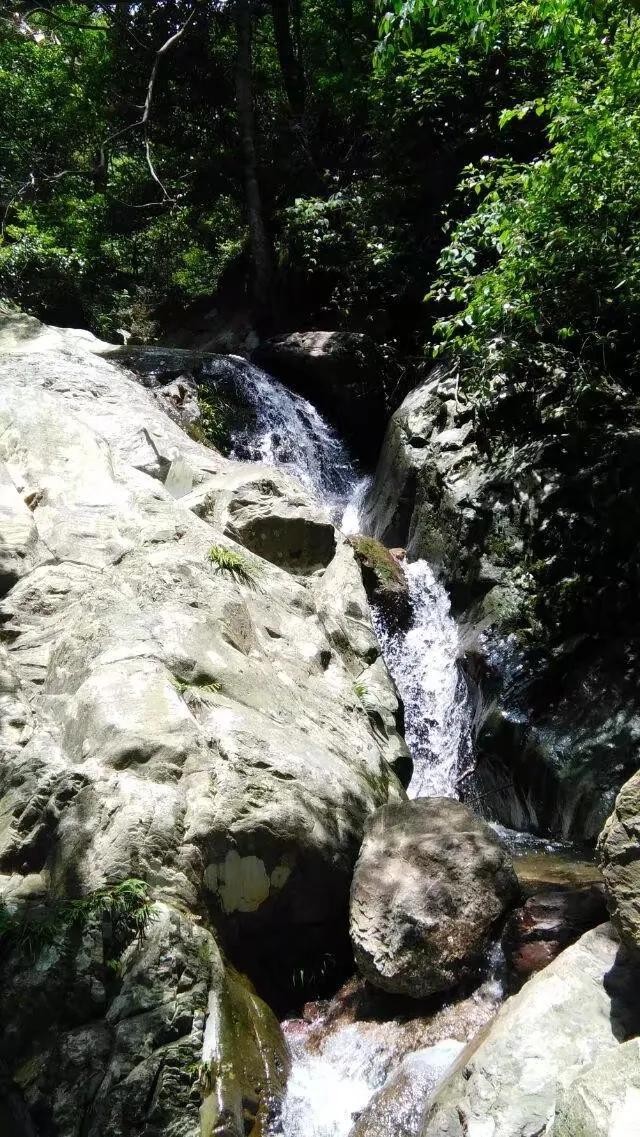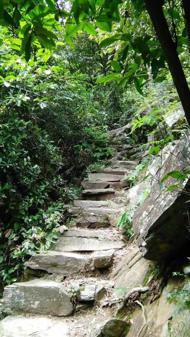 沿途道路基本是石子路,小路沿着小溪而蜿蜒曲折盘旋。爬山并不寂寞。看着道路两旁有花的陪伴,听着叮咚泉水之音,摸着巨石石子,一路上还可以欣赏到瀑布飞泉。继续向上,要攀爬倾斜的铁质栈道,挑战不断挺的高度。天气正好,阳光散射下的光线照在树叶上,金光闪闪。偶尔在森林深处,听到几声不知什么鸟儿的歌唱,在半山腰处望到石洞,云海,体会“气蒸云梦泽”的魅力。