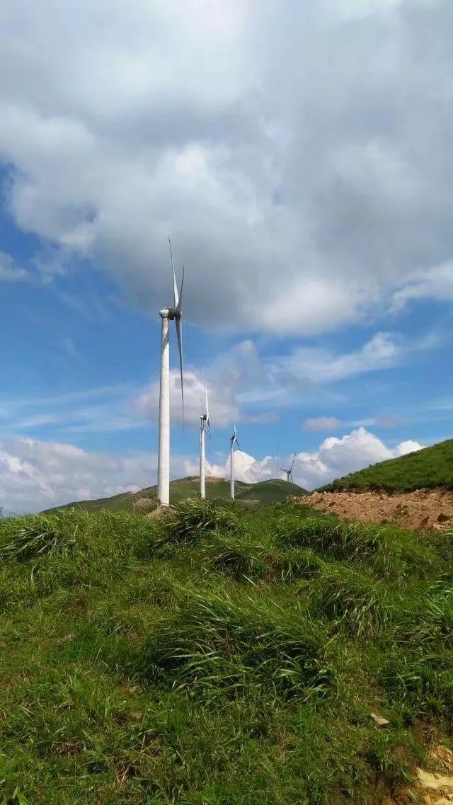 这里风力资源丰富,当地政府已经进行开发,在山顶安装了许多风力发电机。她们像一座座巨像,用巨大的叶子欢迎人们的到来。