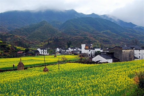 每到油菜花盛开季节,白墙黛瓦的古民居在金黄的油菜花衬托下,格外好看!