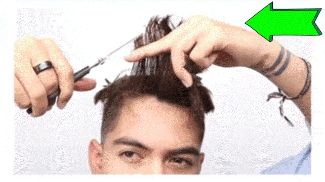 首先要将头顶头发分层,找到头发分界的地方,剪刀要微微向下倾斜,要把所有分层的地方都修一修,这样头发不会显得那么突兀。如果是短发用手夹不住,可以直接剪。