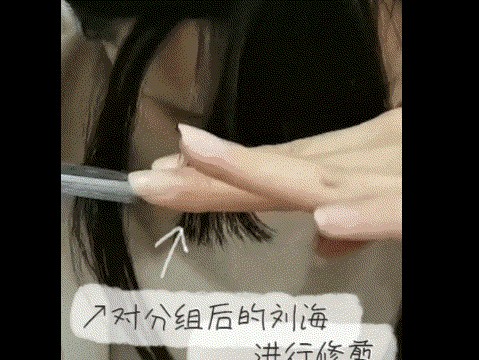 前置步骤:剪的时候最好在洗发后半干半湿的时候,用梳子来进行需要剪的线条,用你的右手拿剪刀,同样用右手将需要剪的头发梳理好,保证根根分明后,以左手的食指与中指将头发夹住,保持平行性,就可使用剪刀开始剪。