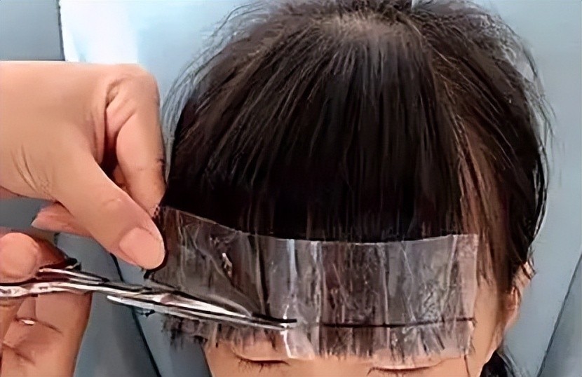 这一技巧是在宽胶带上拿记号笔比着尺子画一条直线,把刘海朝前梳好,胶带贴在刘海上,这条线就是要剪的位置,沿着这条线剪就行了。 这样剪下来的碎头发都黏在胶带上,不会掉得哪儿都是,剪得也快,还特别齐整,适合刘海儿比较厚的朋友们。尤其对于小孩子剪刘海,刚上手没经验的家长可以值得一试。