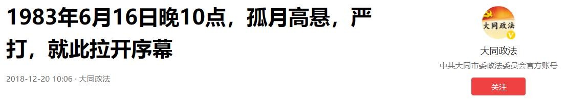 1983年6月16日晚10点,孤月高悬,严打,就此拉开序幕 2018-12-20 10:06·大同政法