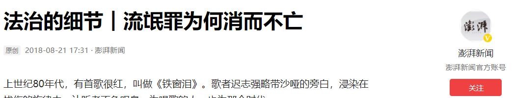 法治的细节︱流氓罪为何消而不亡 2018-08-21 17:31·澎湃新闻