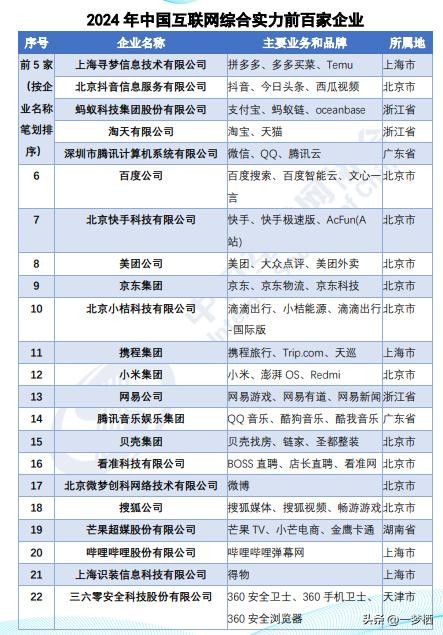 今天就给小伙伴们介绍一下,《2024年中国互联网综合实力前百家企业》榜单中的TOP10。其中前5家排名不分先后,仅按照企业名称笔画排序。